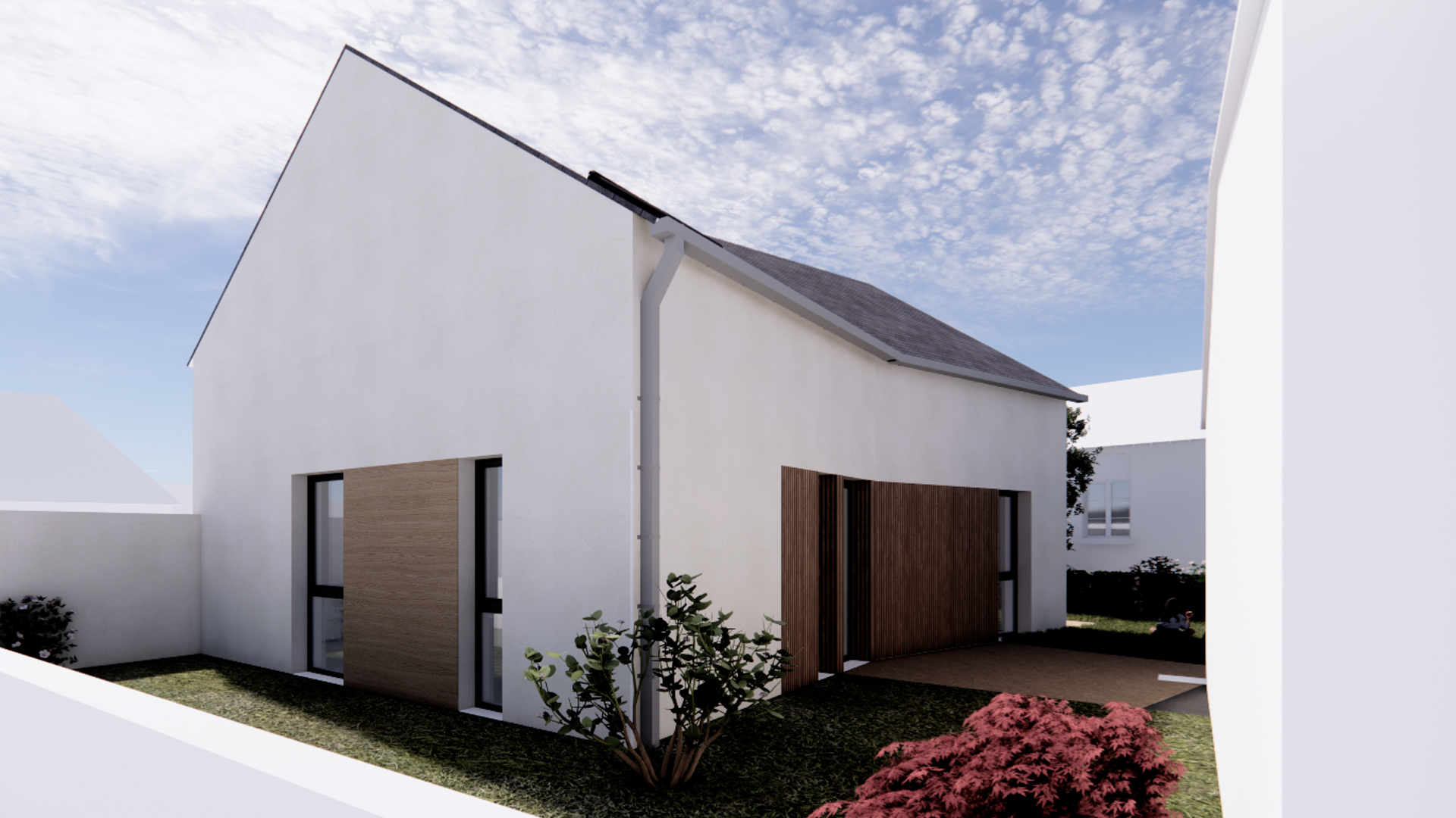 Implantée dans une zone enclavée de la parcelle, entre un préau existant et la limite séparative, cette maison individuelle transforme la contrainte en opportunité architecturale conforme aux règlements d’urbanisme.
