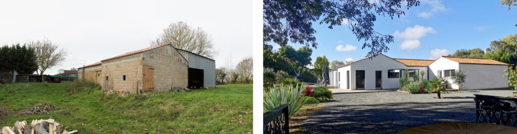 Un projet ambitieux de réhabilitation complète d’une ancienne étable avec hangar. Une première phase s’est inscrite dans un cadre réglementaire exigeant, respectant scrupuleusement les contraintes strictes des règlements d’urbanisme de la commune de Sallertaine.